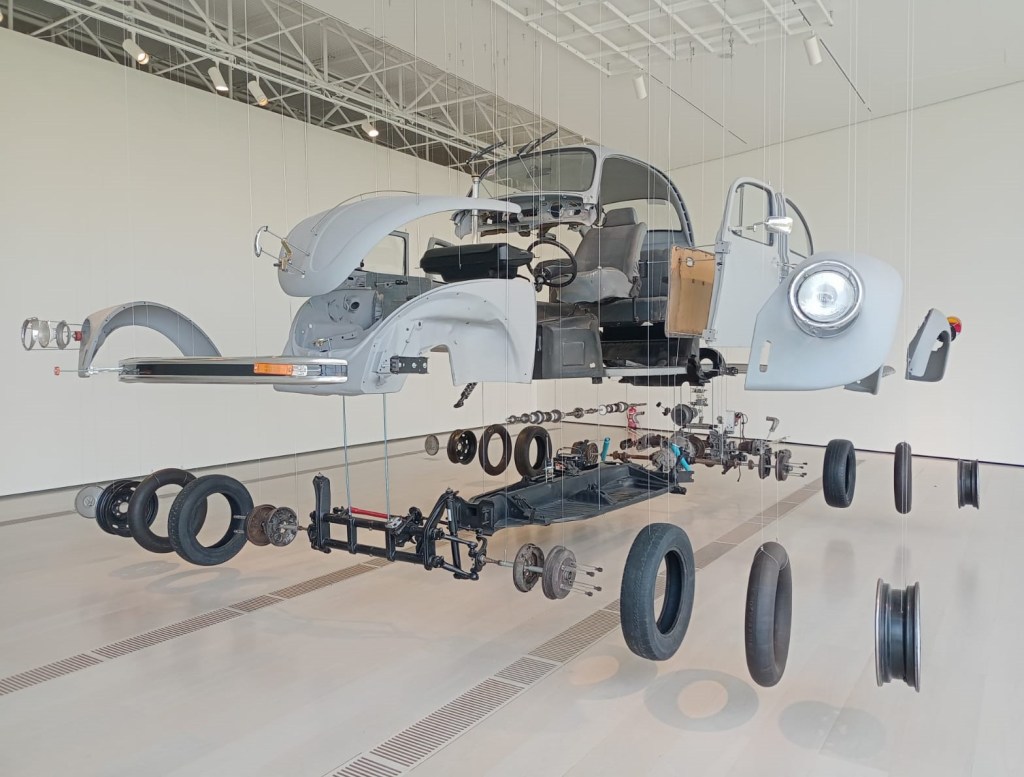 La exposición “Visión expandida” de Damián Ortega (1967), comisariada por Vicente Todolí, se inauguró el pasado 8 de octubre y estará disponible hasta el 26 de febrero en el Centro Botín de Santander. Una oportunidad para ver y recorrer las obras suspendidas —y en cierto modo inmersivas— del artista mexicano.