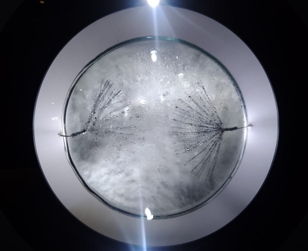 Sumergirse en la presente exposición implica bucear en lo microscópico, alcanzar las capas más profundas de la vida y tomar un particular sentido de existencia. La experiencia estética se subyace así a la reflexión ecológica, al documento crítico y divulgativo, a la semántica científica. “Ciencia fricción” quiere hacernos ver y lo hace —principalmente— a partir de los legados de Lynn Margulis y Donna Haraway, con sus teorías de la evolución biológica e imaginarios narrativos, respectivamente.